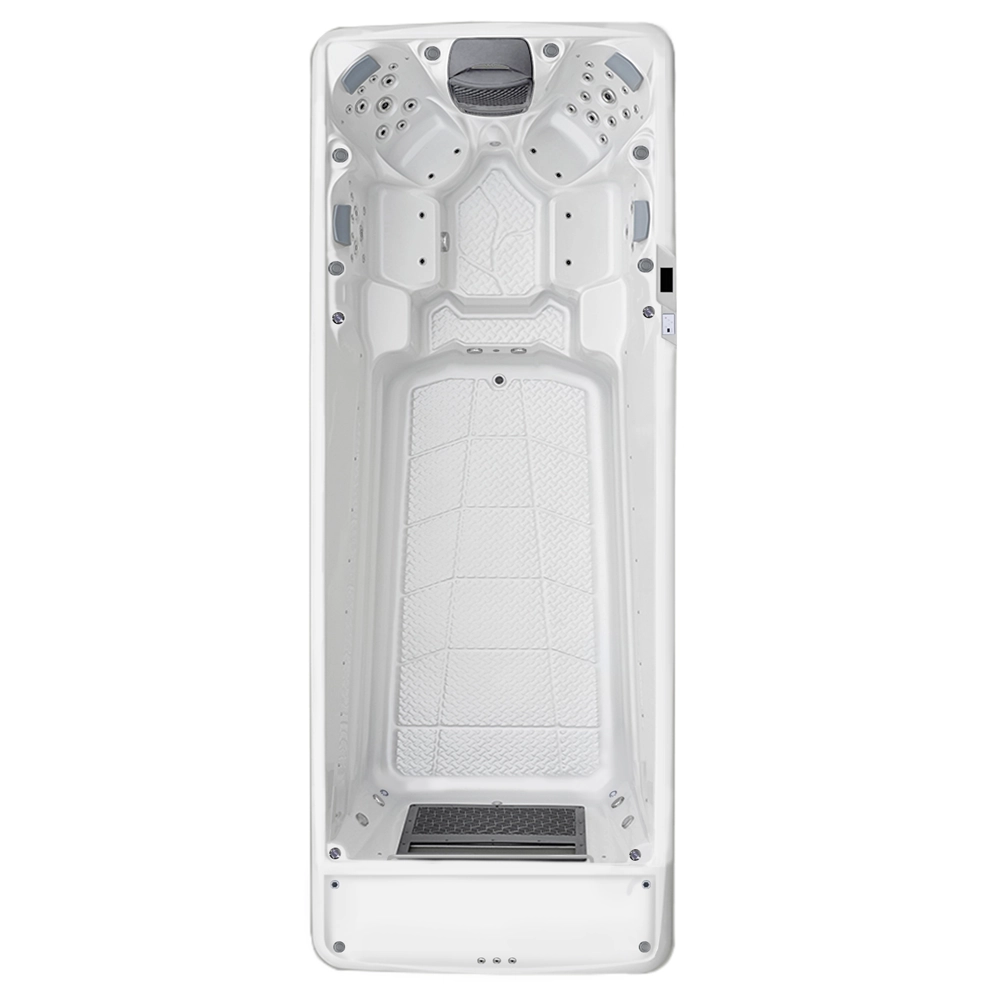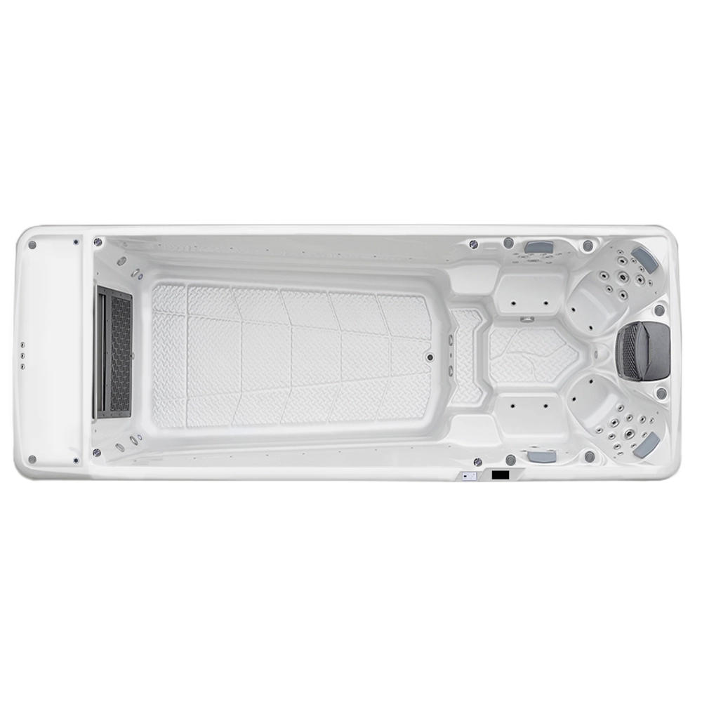 Bazen također ima 4 udobna masažna sjedala koja omogućuju učinkovitu masažu nakon treninga ili potpuno opuštanje na kraju dana. Svako sjedalo opremljeno je različitim mlaznicama, što omogućuje širok raspon masaže. Učinkovit sustav filtriranja, koji uključuje filtere uložaka, ozonator i pješčani filter, osigurava čistu vodu. Bazen je izuzetno energetski učinkovit jer su stranice i dno također izolirani, a spreman je i za ugradnju toplinske pumpe.