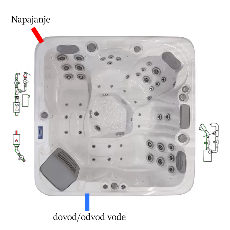 42 hidromasažne mlaznice i 10 zračnih mlaznica