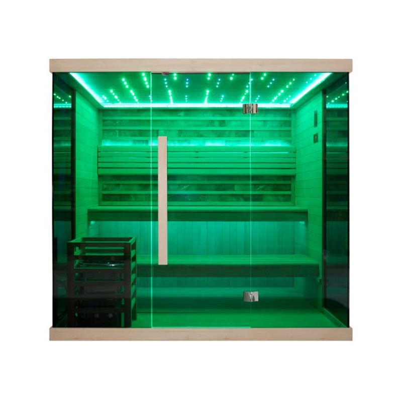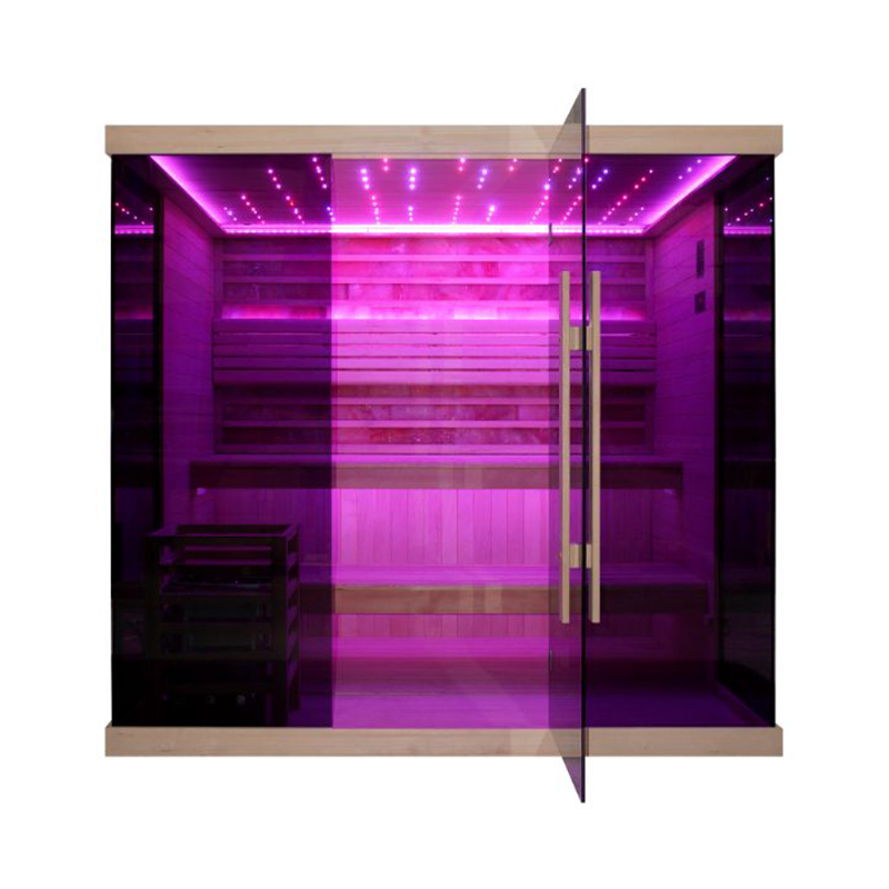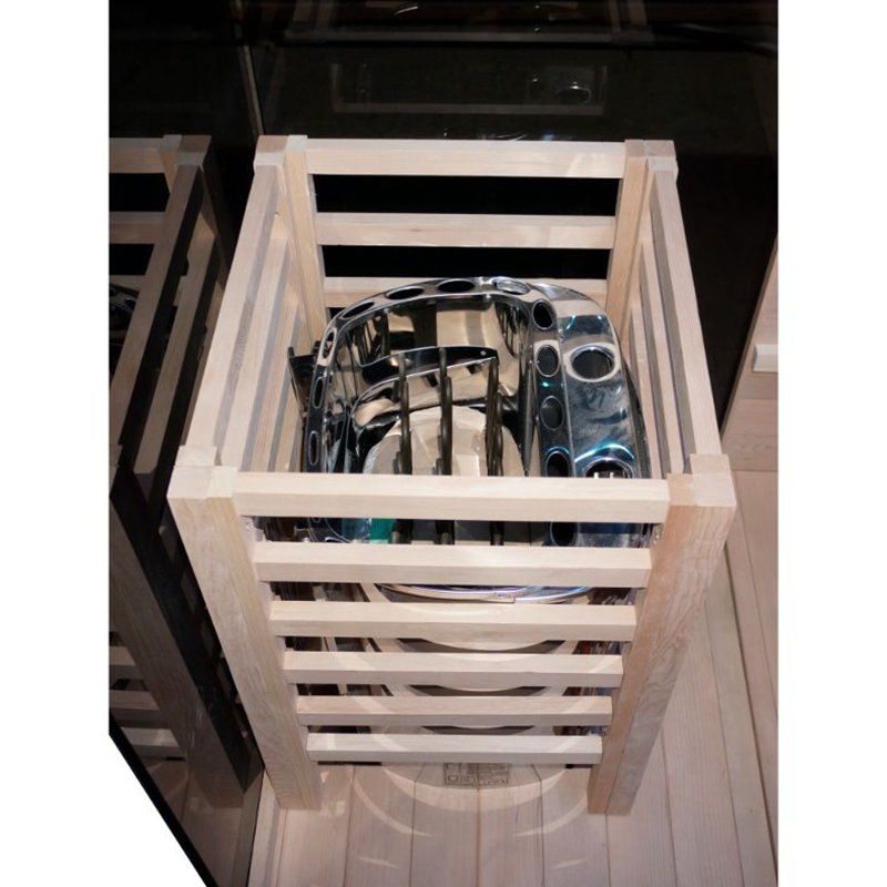 JBZ220 je vrhunska sauna koja kombinira četiri različite terapije: finsku saunu, parnu i bio saunu te slanu sobu. Iskustvo možete poboljšati uključenom opcijom kromo- i aromaterapije. Izrađen od kvalitetnog kanadskog Chuga drveta. Luksuzan izgled nadopunjuju zatamnjena stakla koja stvaraju istinski opuštajuću atmosferu. Sauna je velikog kapaciteta, jer je pogodna za do 7 osoba, što je čini idealnom za obiteljsko sauniranje ili opuštanje s prijateljima.