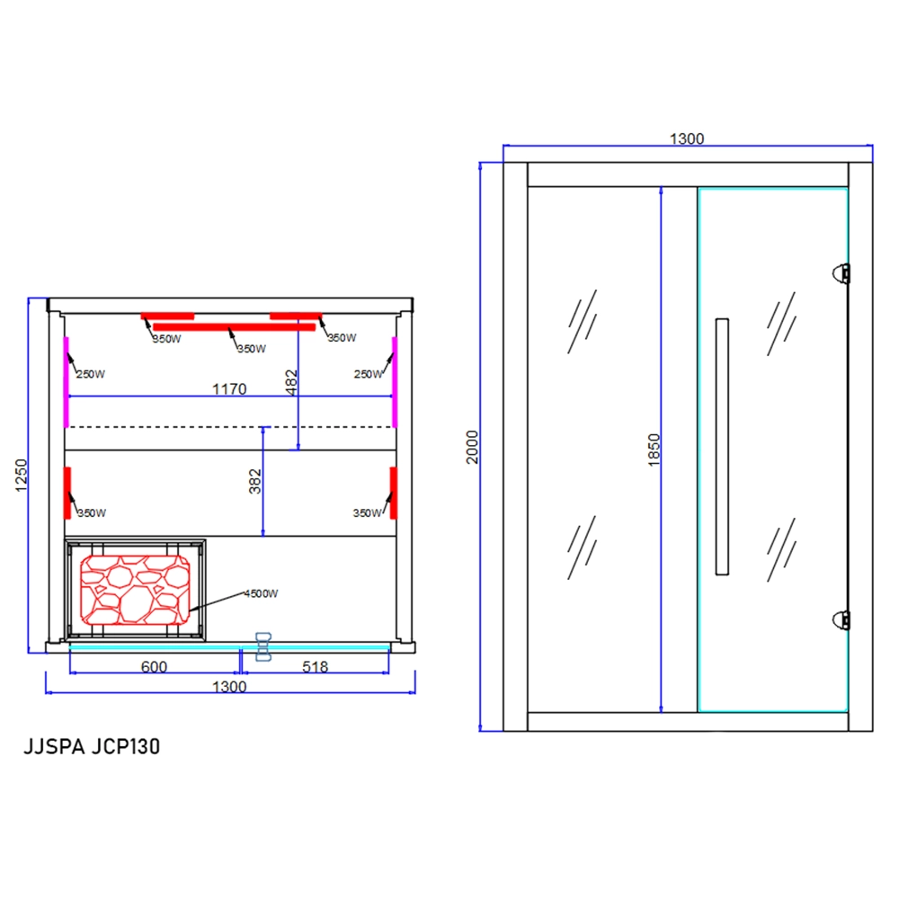 Ova kombinirana sauna spaja prednosti finske saune i IC saune. Grijalice i peći mogu se međusobno kombinirati, ali možete koristiti samo jedan način grijanja. Dok uživate u toplom zagrljaju, možete slušati glazbu preko zvučnika, mijenjati 9 RGB načina osvjetljenja, regulirati snagu grijača i podešavati naslone. Potpuna udobnost i fleksibilnost – ovo je JCP130.