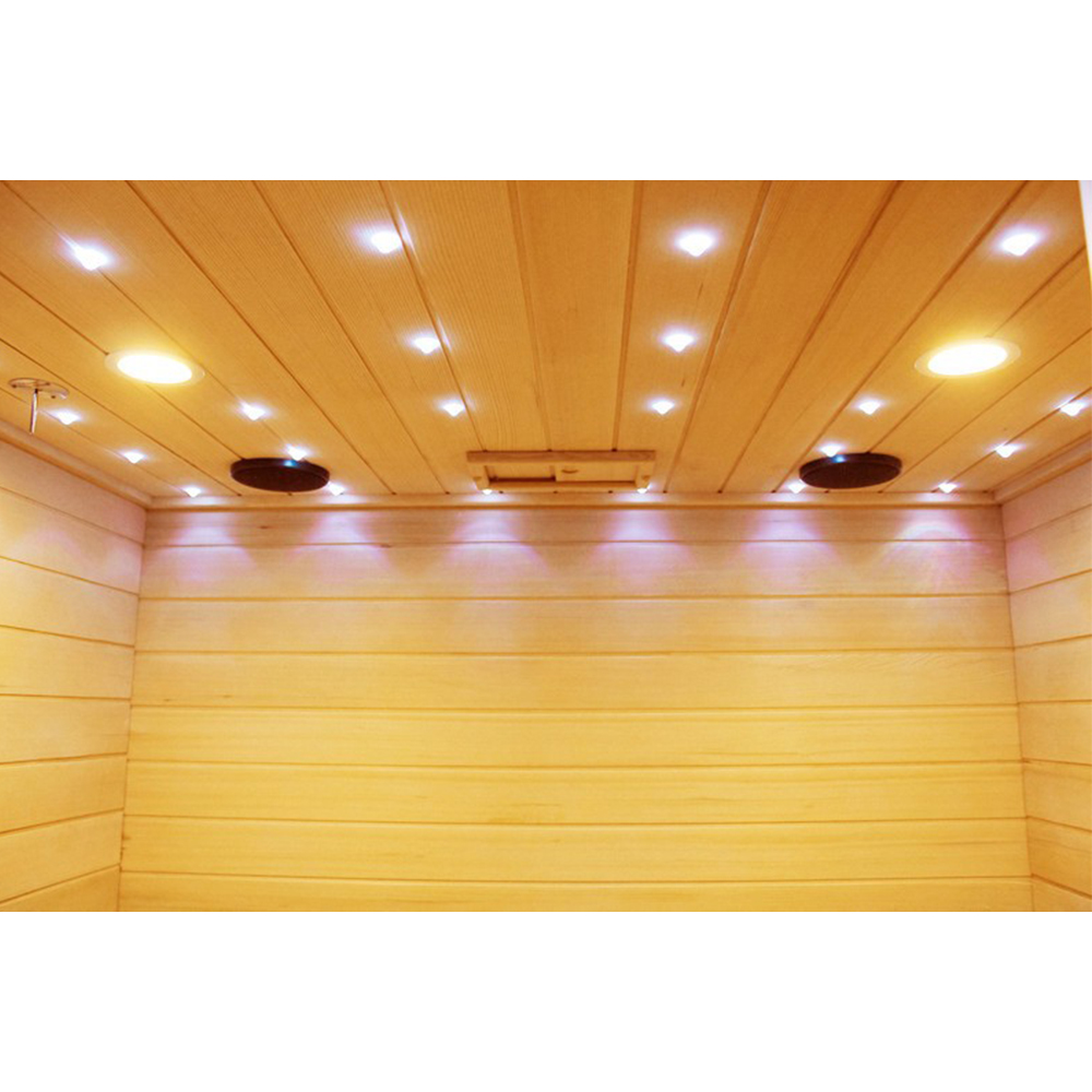 Za svoje mentalno ravnotežu možete se pobrinuti s kromoterapijom koja omogućuje RGB zvjezdano nebo. Zdravstveno je dokazano da ima primjenu izvanrednih ljekovitih svojstava – od povećanja utjecaja, razgradnje tijela, poboljšava cirkulaciju i smanjuje bol. Vlažnost u savni prilagođavamo polivanjem vode po vulkanskom kamenju, uz pomoć priloženog vedra i obuhvaćalke.