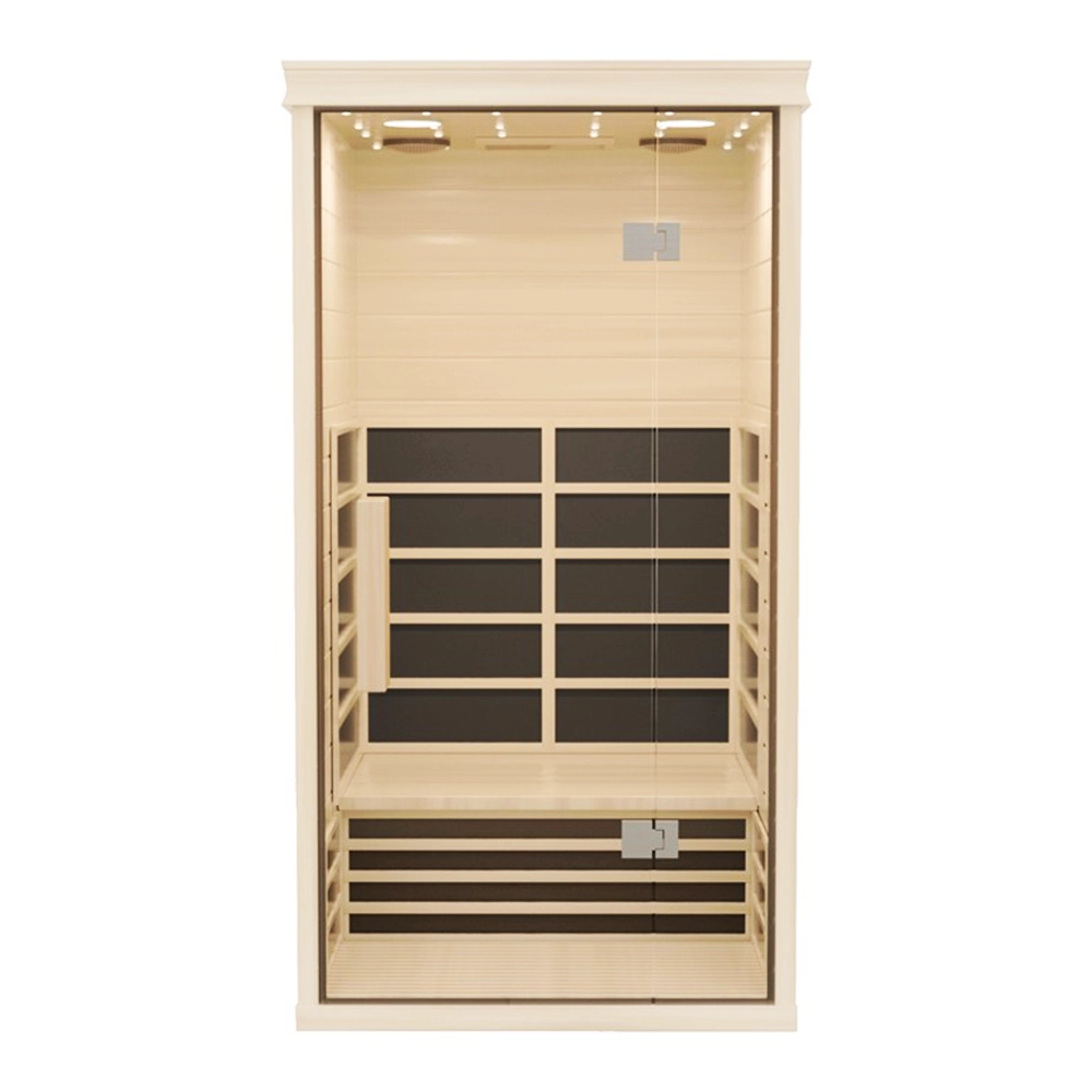 Sauna JIC90 izuzetna je sauna namijenjena jednoj osobi. Spaja eleganciju i funkcionalnost te je idealno rješenje za svakoga tko želi uživati ​​u blagodatima saune u ograničenom prostoru. Inovativnom tehnologijom karbonskih grijača doživjet ćete ravnomjerno i učinkovito zagrijavanje koje će vaše tijelo zagrliti ugodnom toplinom, a istovremeno omogućiti potpuno opuštanje mišića i uma.