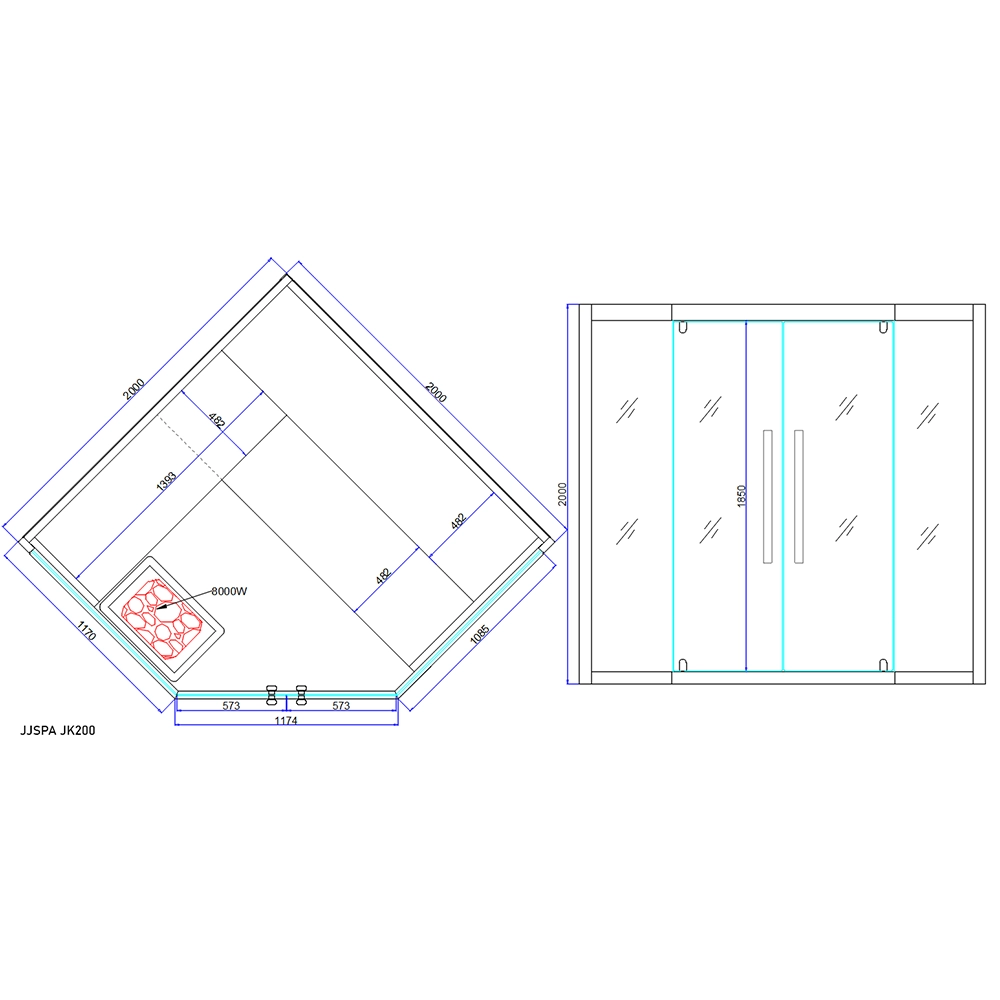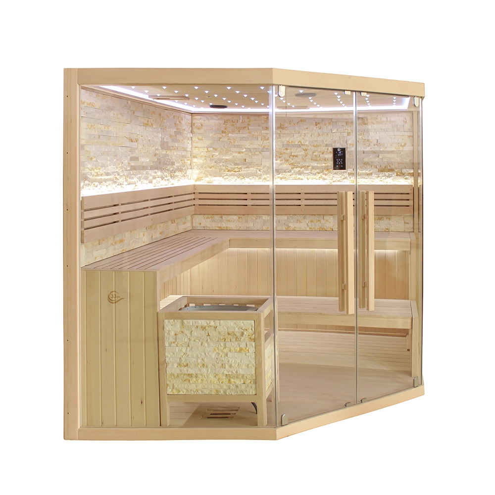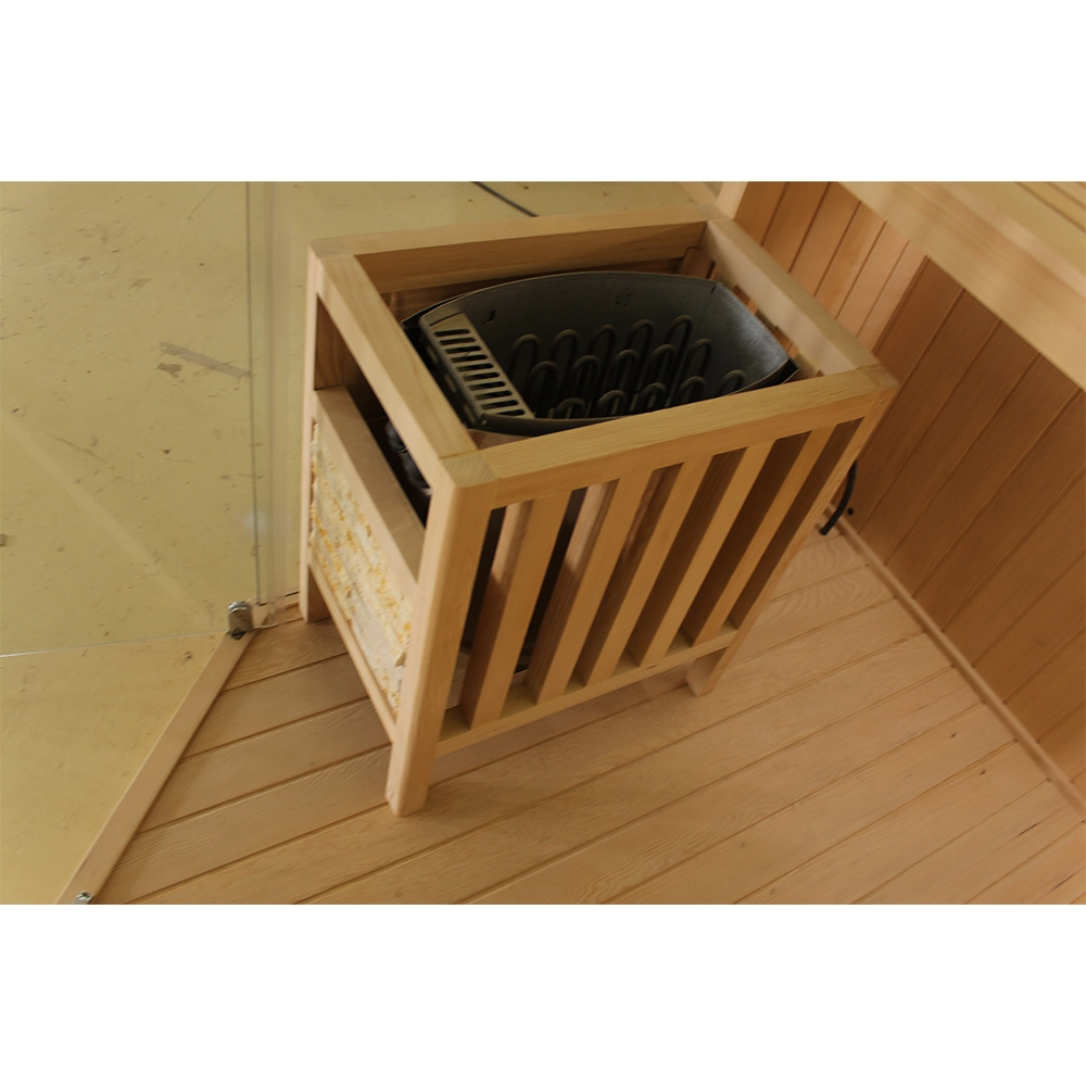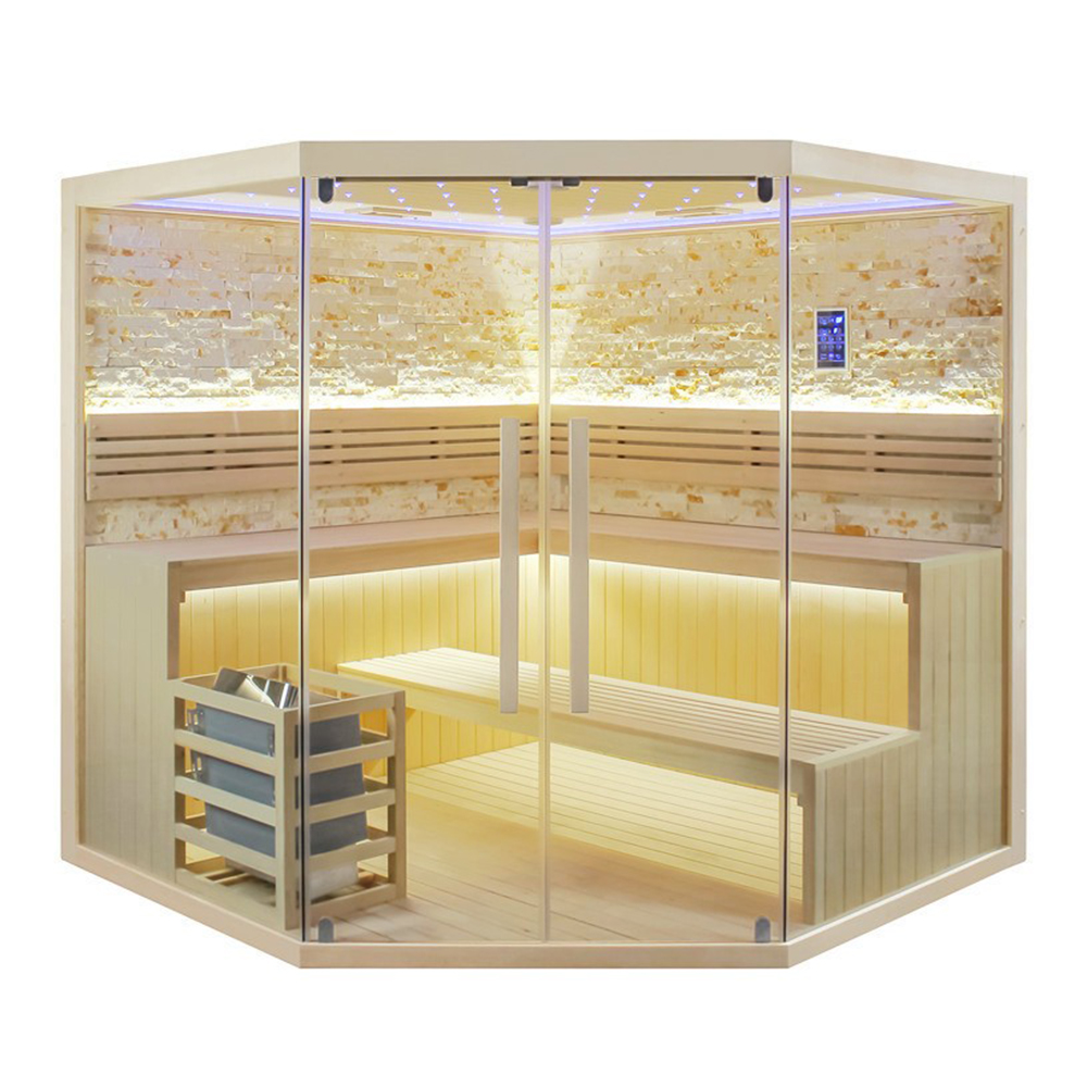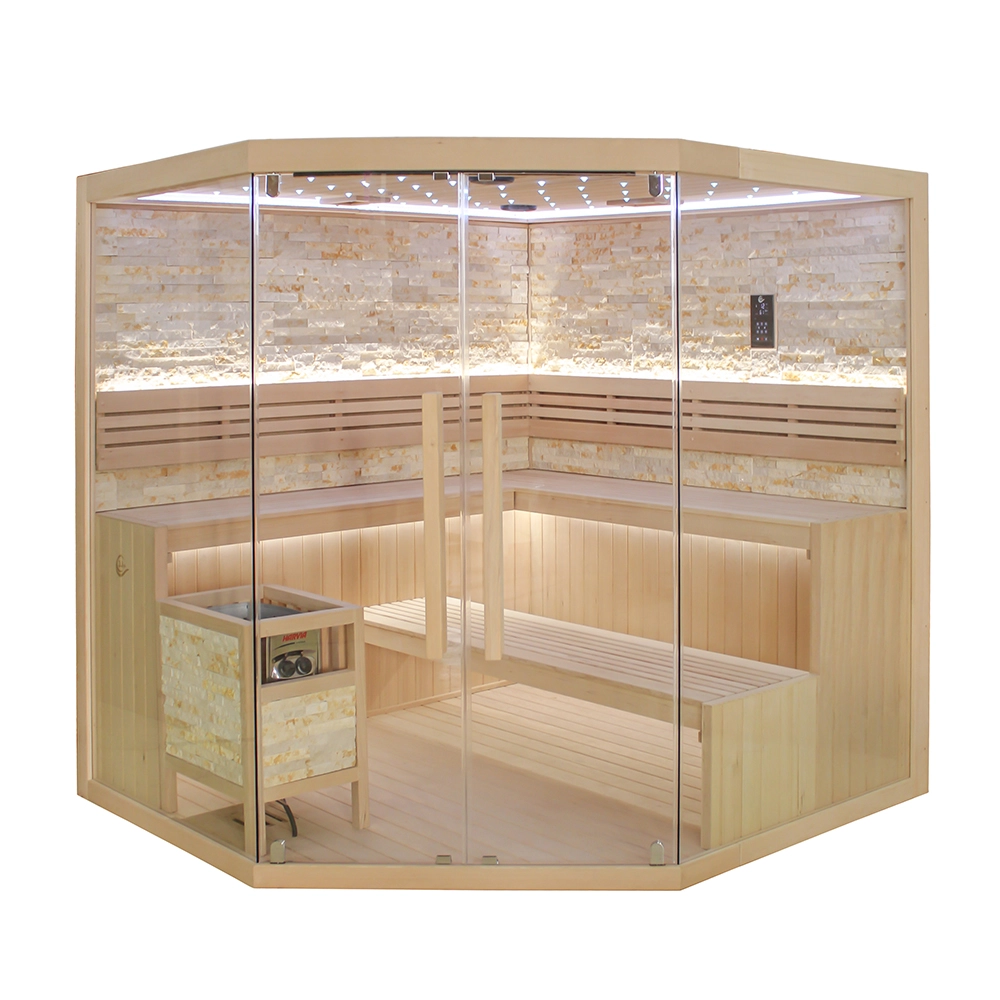Kutna finska sauna JK200 nudi izvrstan način druženja jer u svoj topli zagrljaj prima čak 6 osoba istovremeno. Osjećajte se kao preporođeni i priuštite si odmor koji će također učiniti mnogo dobrog za vaše zdravlje. Kutni dizajn omogućuje vam da iskoristite prazan kut u svom domu.