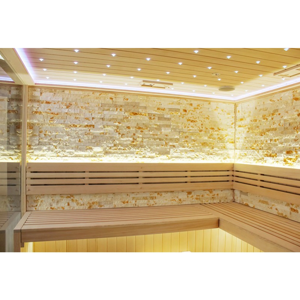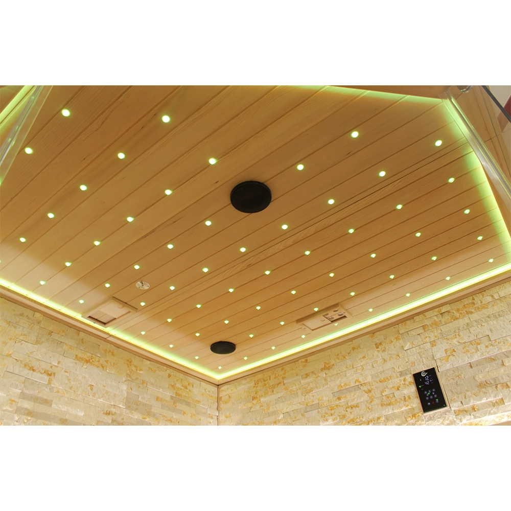 U sauni se možete pobrinuti za svoju psihičku ravnotežu kromoterapijom koju vam omogućuje RGB rasvjeta. Medicinski je dokazano da korištenje saune ima iznimna ljekovita svojstva – od povećanja otpornosti, detoksikacije organizma, do poboljšanja cirkulacije i smanjenja bolova. Možete biti sigurni da će vam sauna donijeti zadovoljstvo i opuštanje nakon napornog dana.